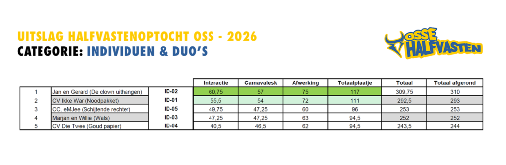 1. ID-02 – Jan en Gerard (hangen de clown uit) – Boekel – 310 punten