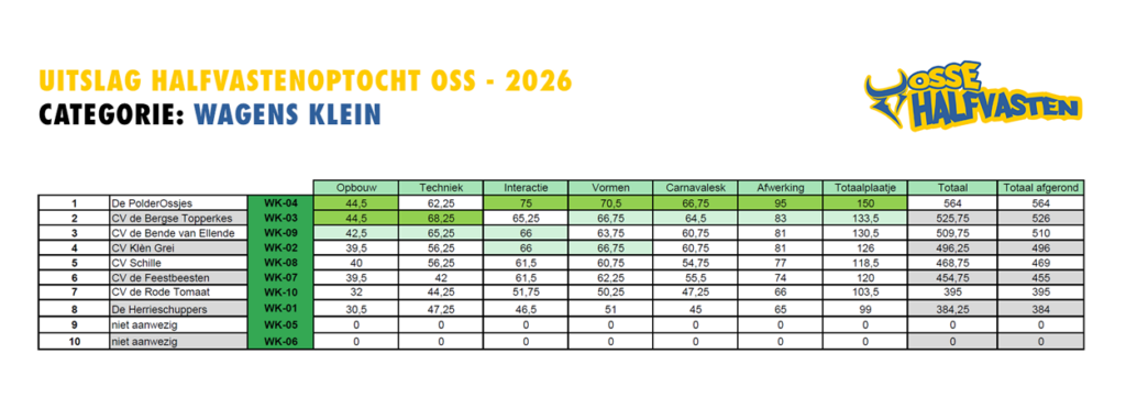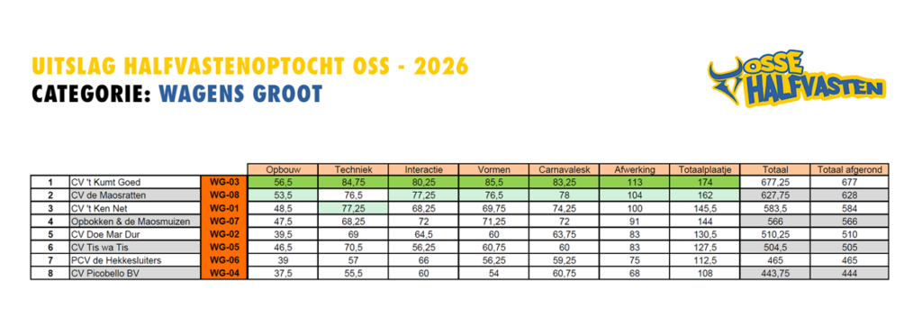 1. WG-03 – CV ’t Kumt Goed – 677 punten